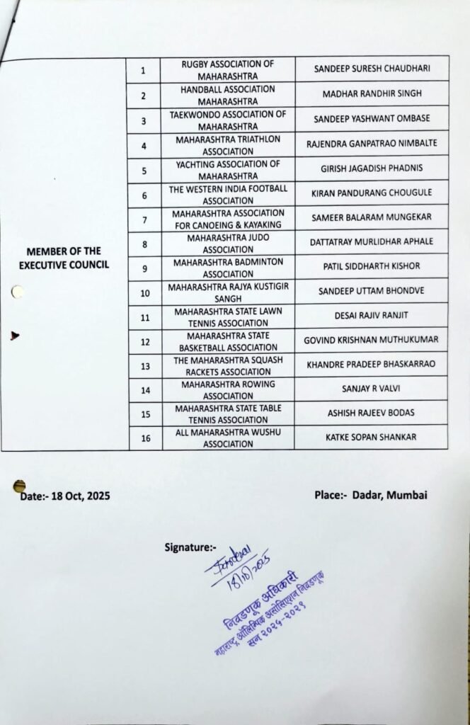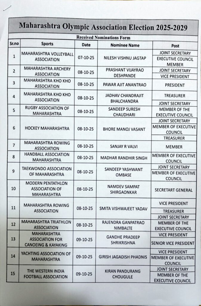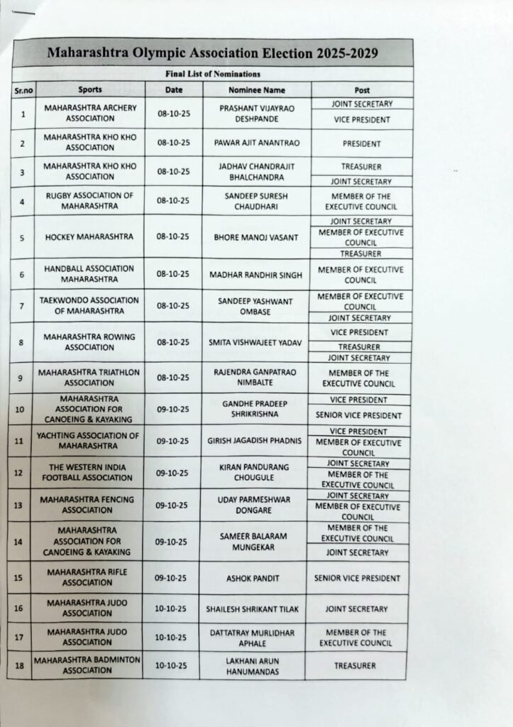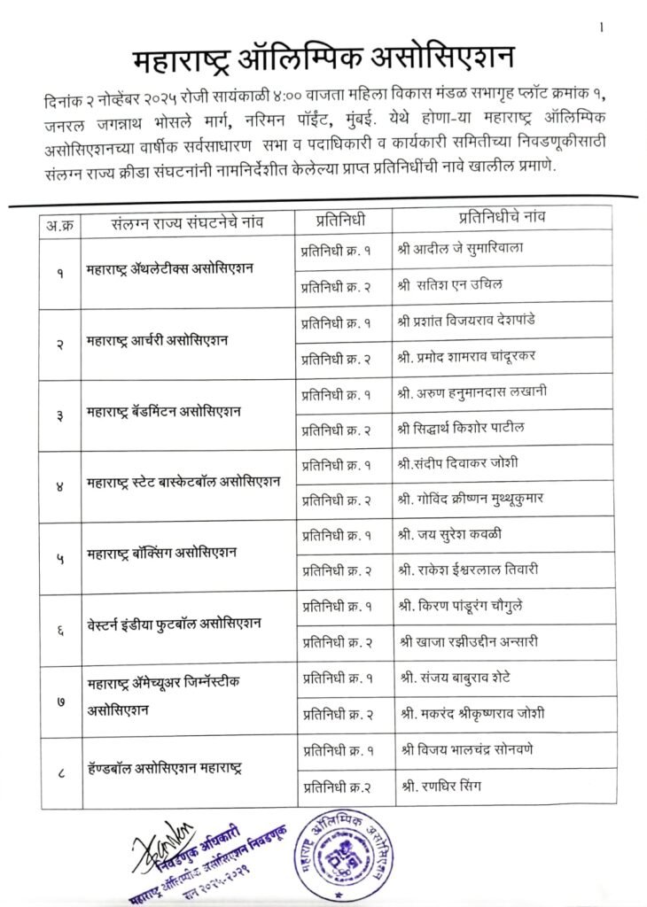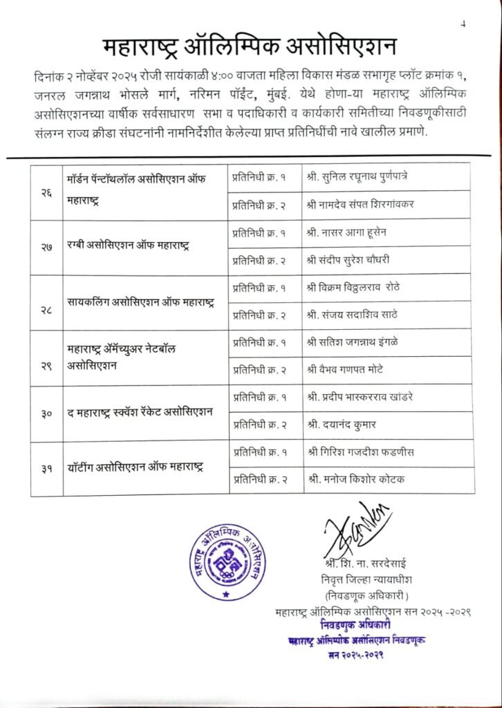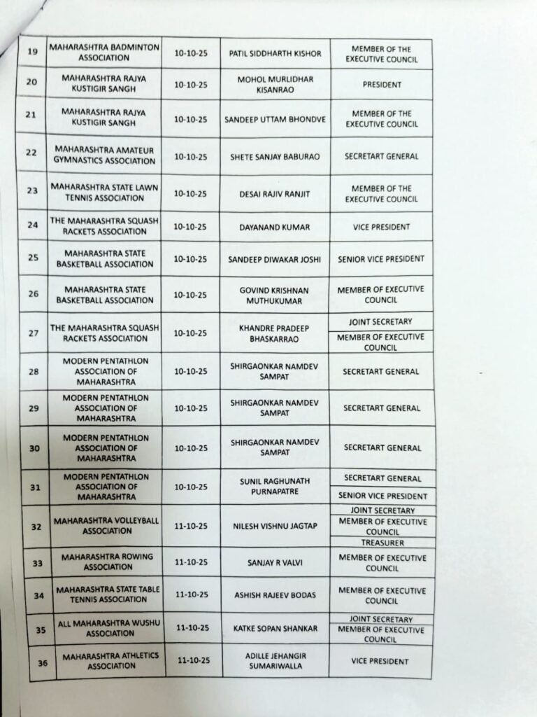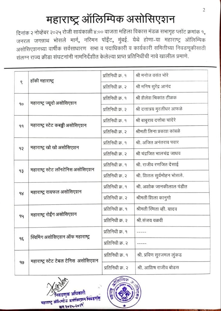 संलग्न राज्य क्रीडा संघटना प्रतिनिधीची नावे