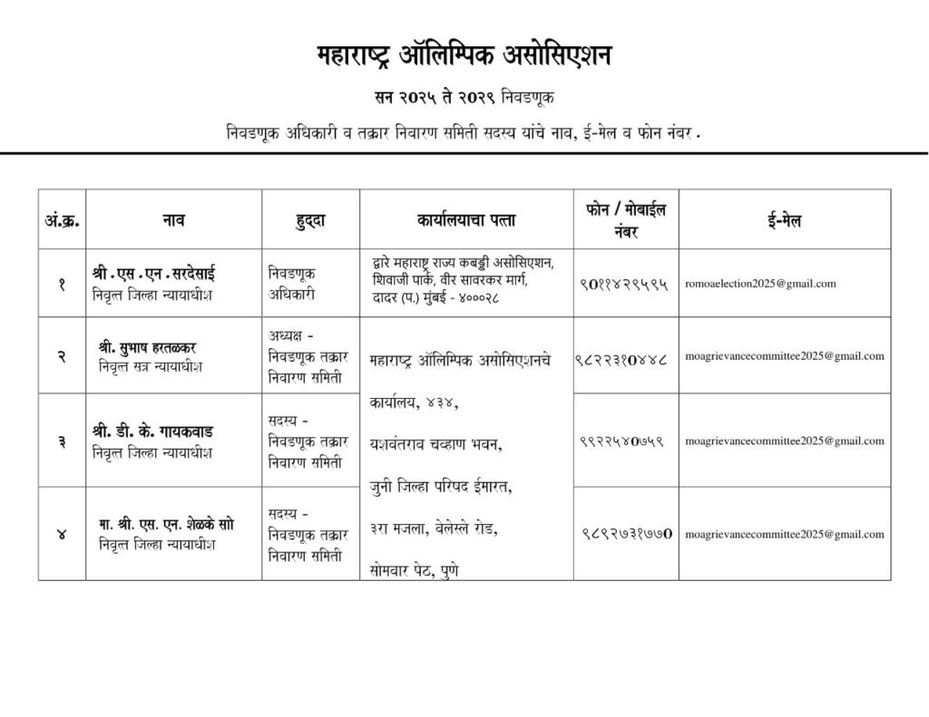 निवडणूक अधिकारी तसेच तक्रार निवारण अधिकारी यांचे नाव